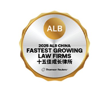 Ranked as "2025 ALB China Fastest Growing Law Firms" by Asian Legal Business.